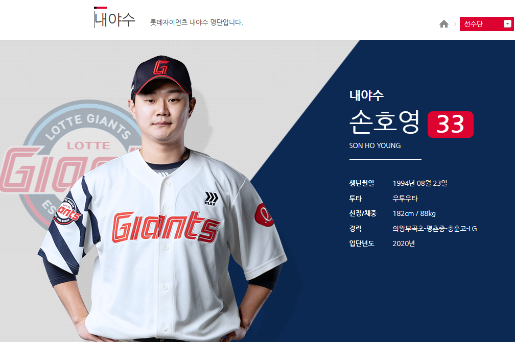 LG에서 넘어온 손호영 선수하면 롯데의 복덩이라고 하는 선수이기도 한데요. 부상만 없다면 정말 뛰어난 활약을 보여줄 수 있는 선수이며, 국제 아마추어계약을 할 정도로 뛰어난 재능을 롯데에서 발휘하고 있는 선수이기도 합니다. 공격과 수비 모두 뛰어나며 적극적인 스윙에서 좋은 결과들을 만들어내는 선수로 부상만 없다면 충분히 롯데의 현재로 활약이 기대되는 선수이기도 합니다
